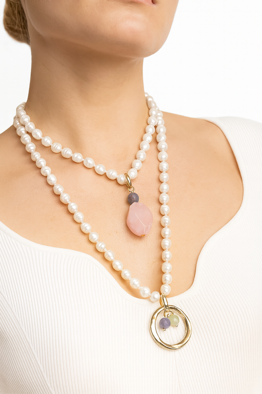 Gold-Plated Geometric Design with Pearls & Natural StonesRegular price $199.00 USDRegular priceUnit price / per-