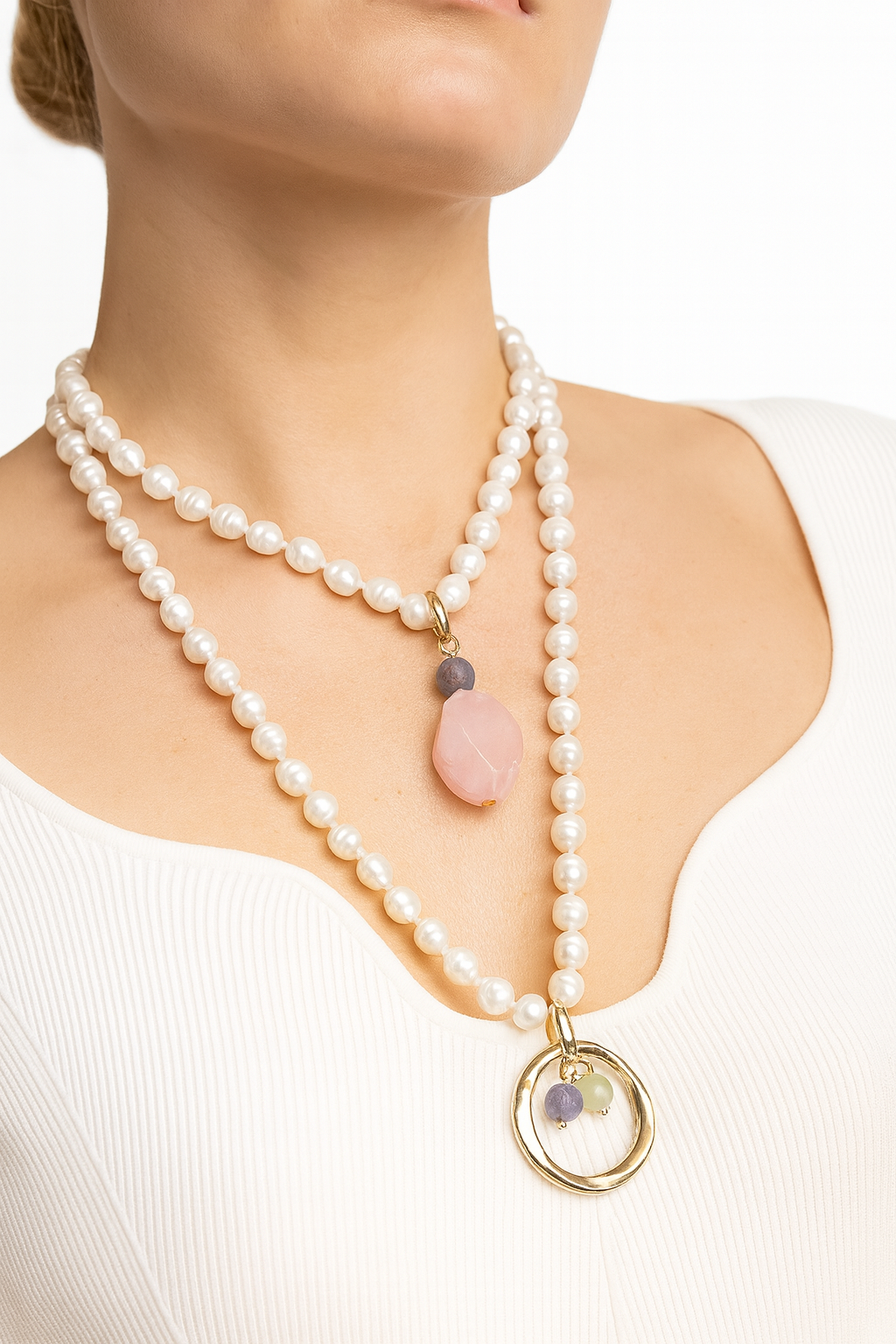 Baroque Pearl & Rose Quartz Pendant Necklace