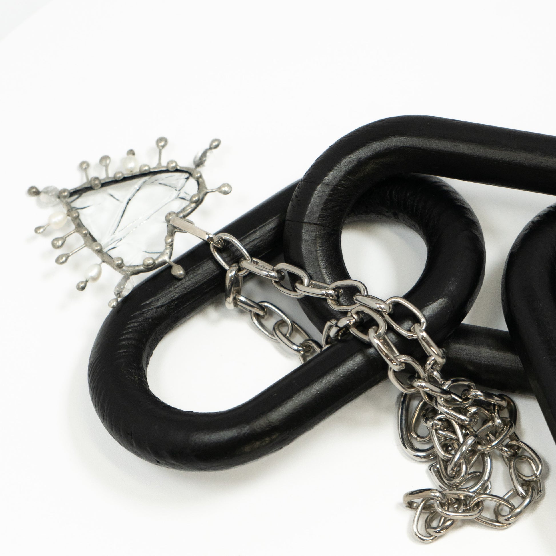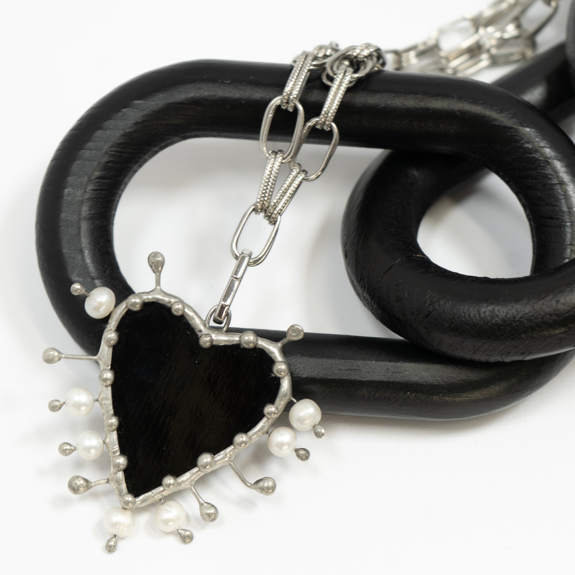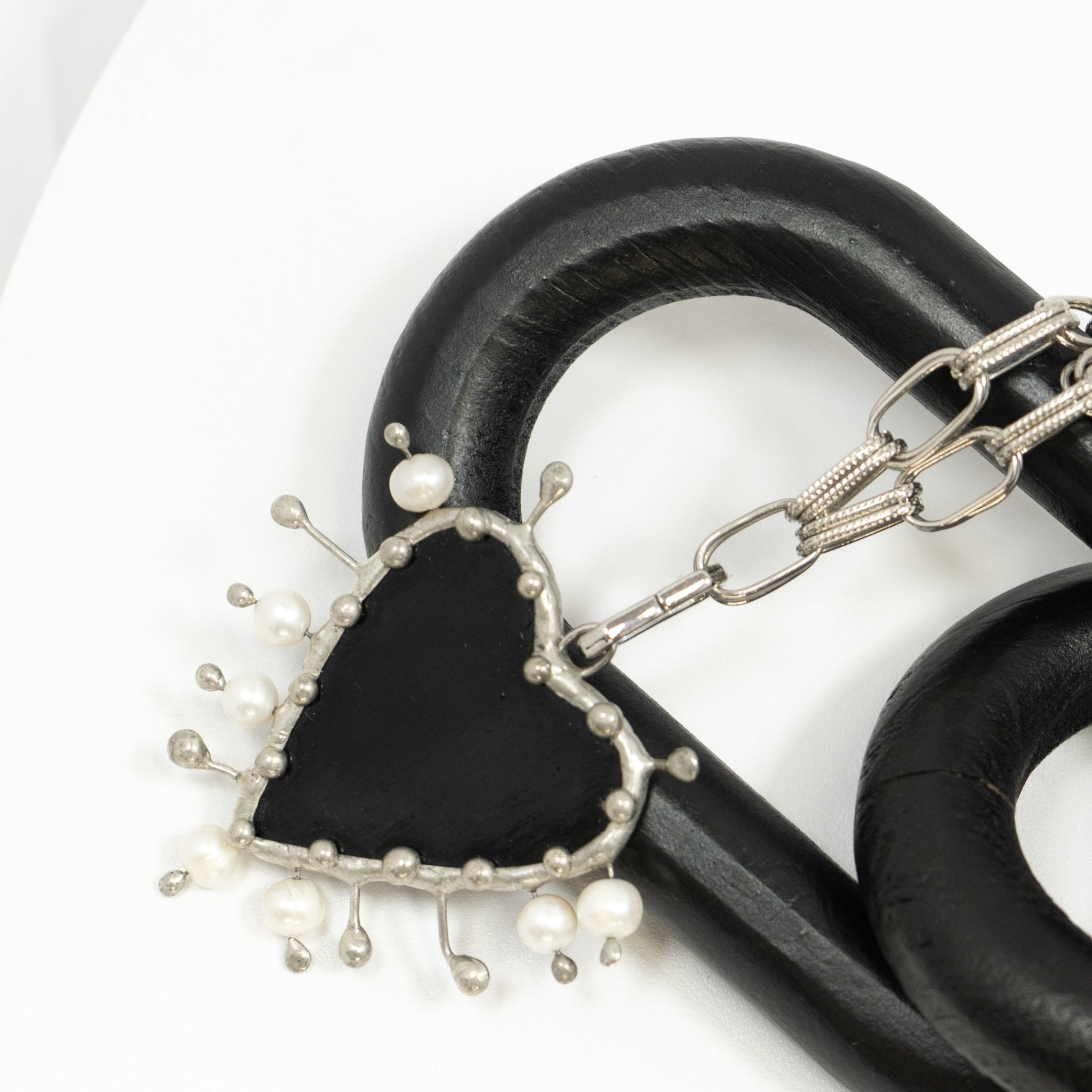 Introducing our handcrafted heart-shaped necklace, made from special glass and adorned with painted pearls. This exquisite piece combines artistry and elegance, making it a unique addition to any jewelry collection.