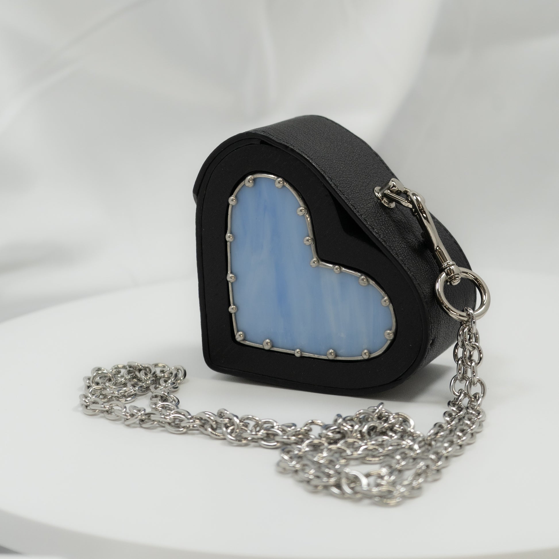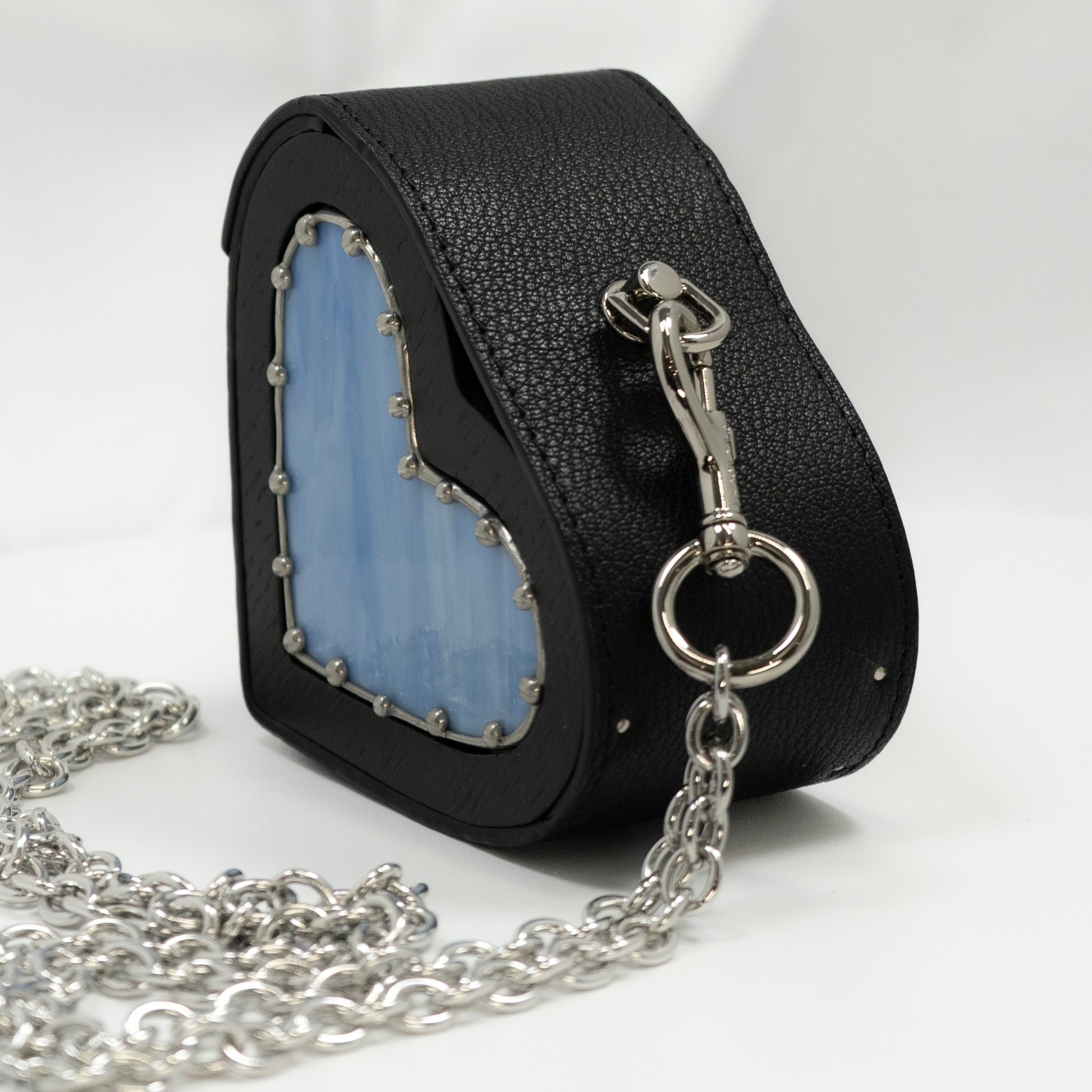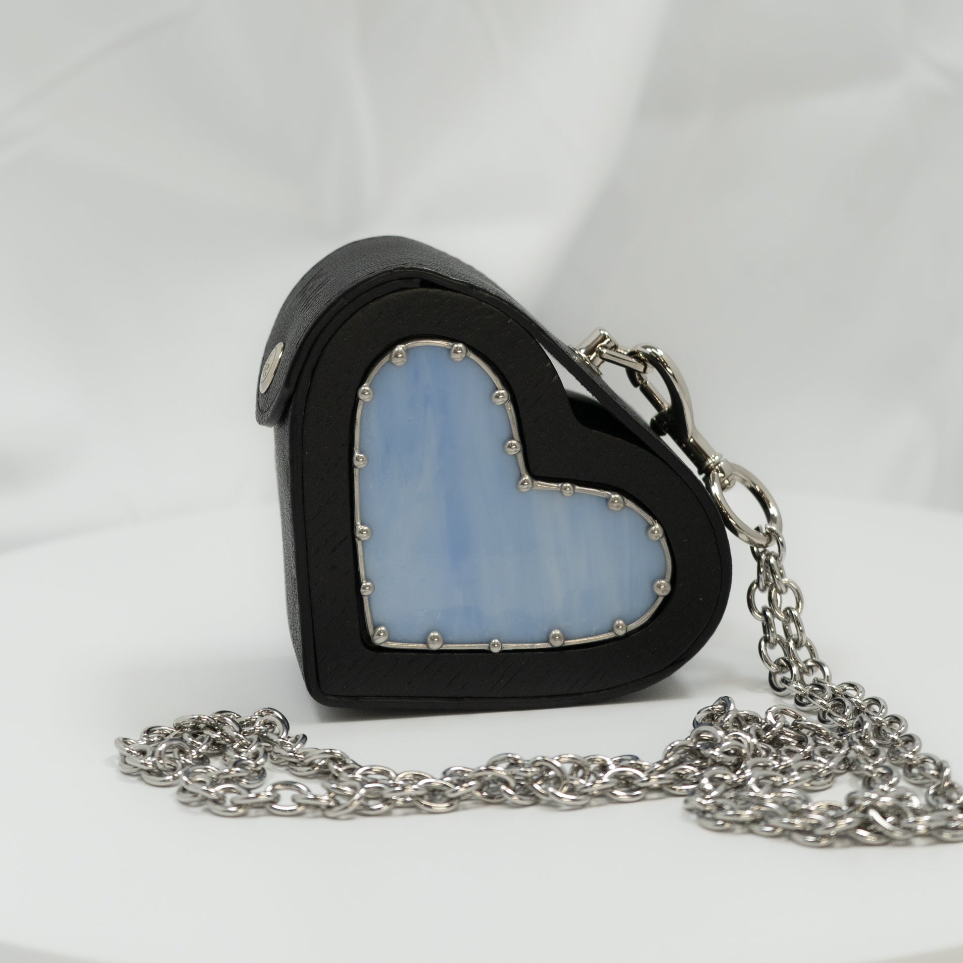 Heart small black with blue glass
