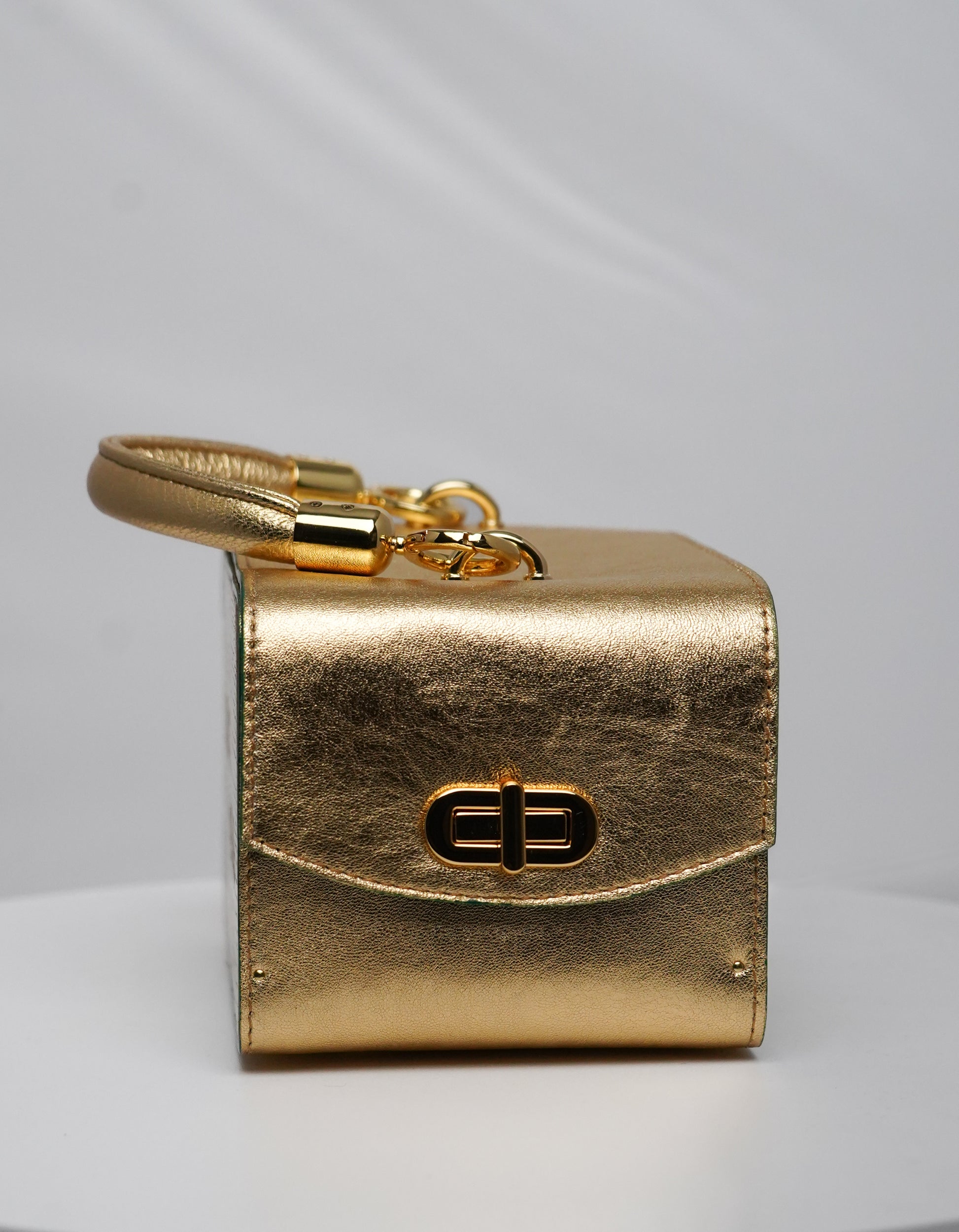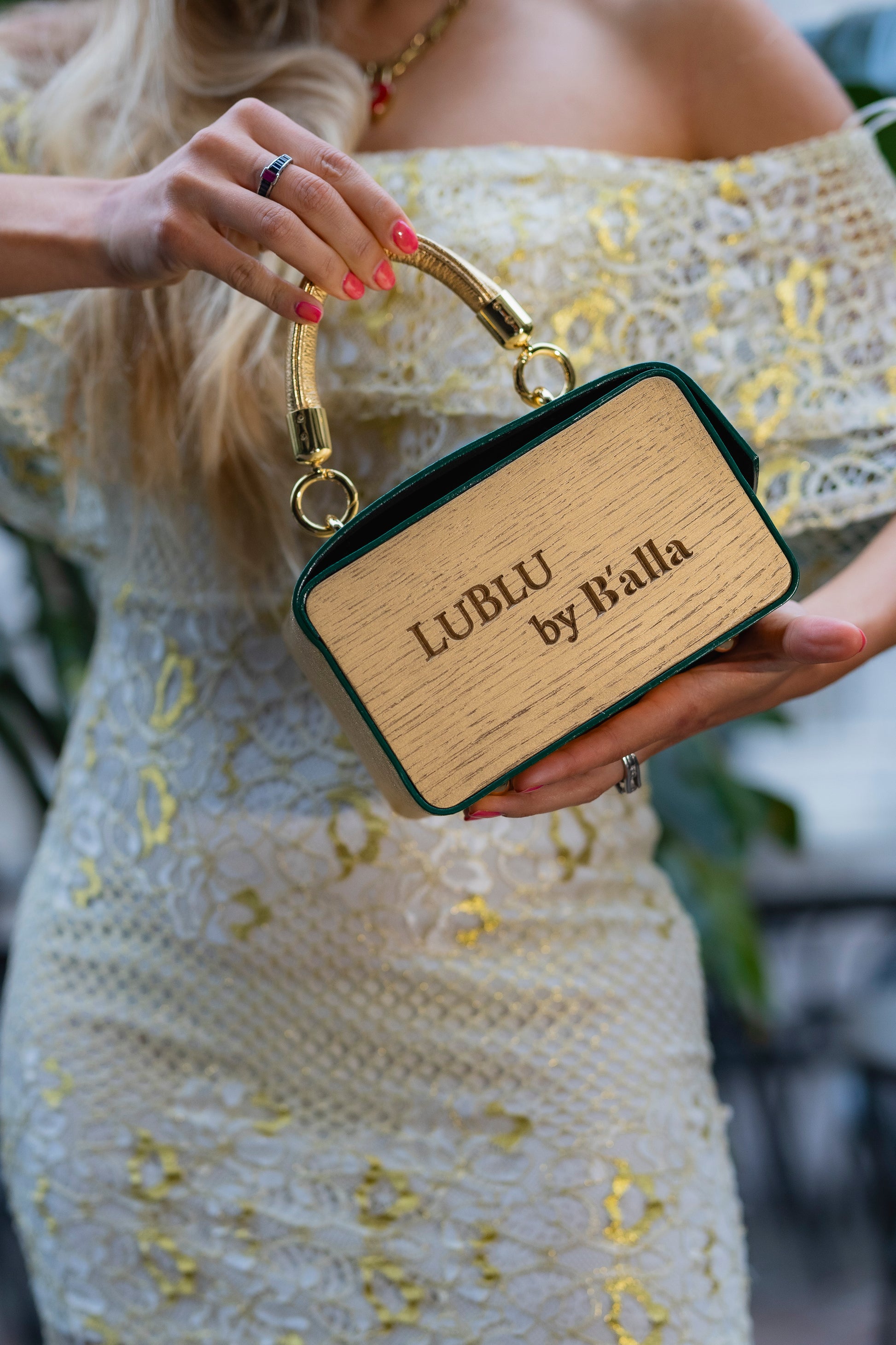LUBLU MIAMI Gold Leather and Wood Handbag
