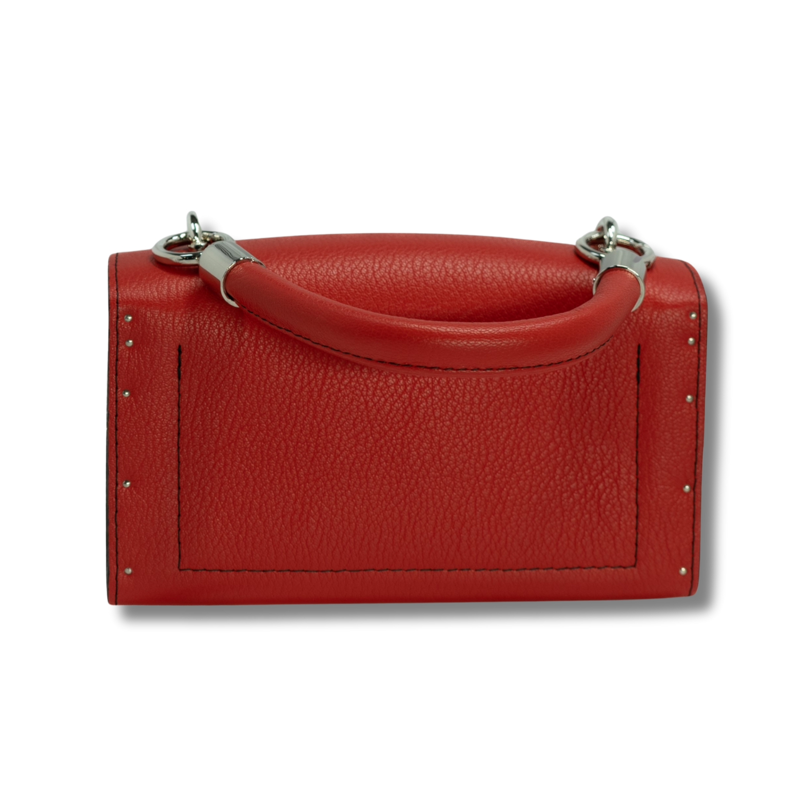 Introducing our handbag made from red Italian leather, featuring wooden inserts with a printed logo. The interior is lined with luxurious Italian Alcantara, combining elegance and functionality in a timeless design.