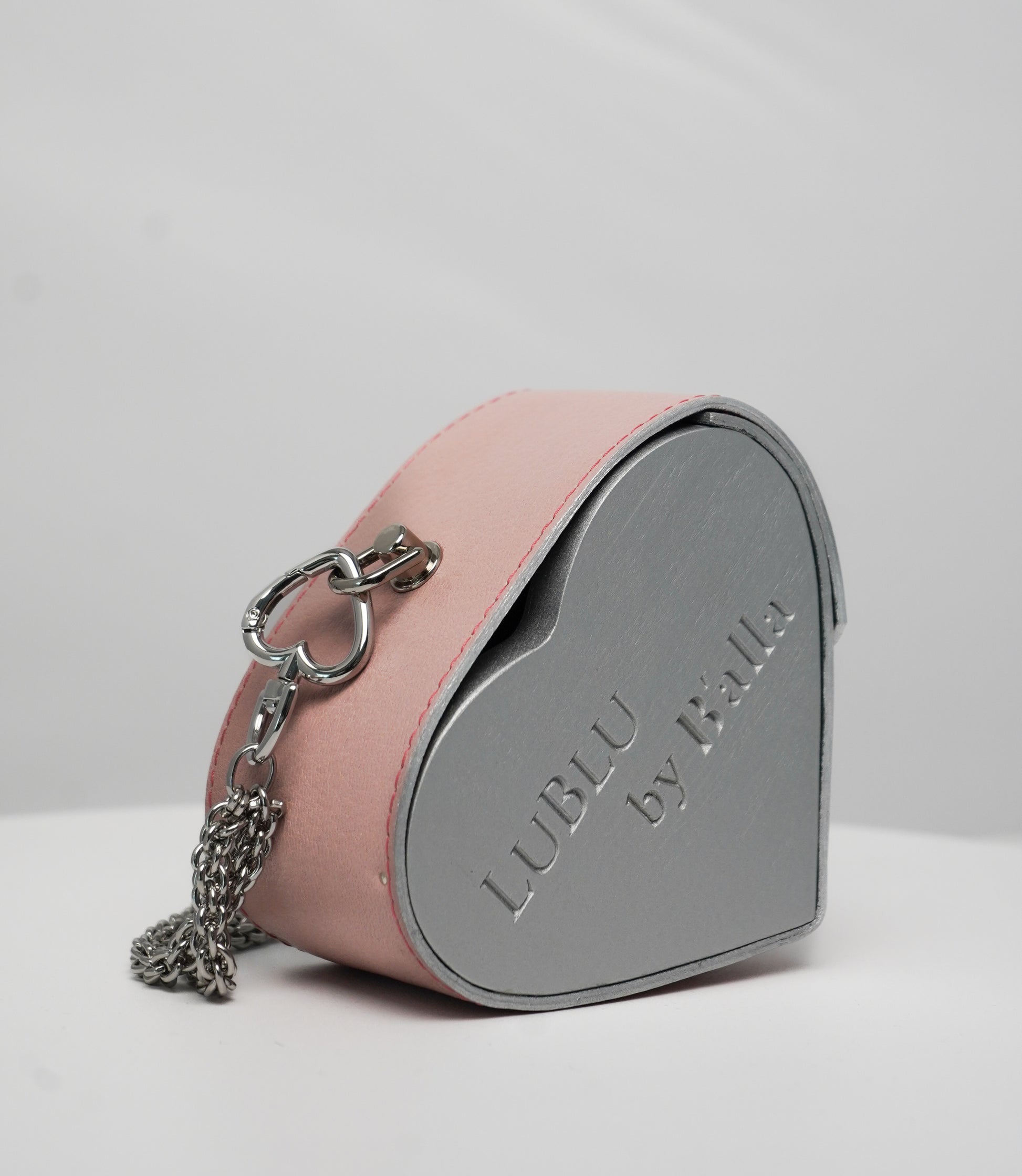 💠 Material: Soft pink leather with a transparent heart-shaped side panel;