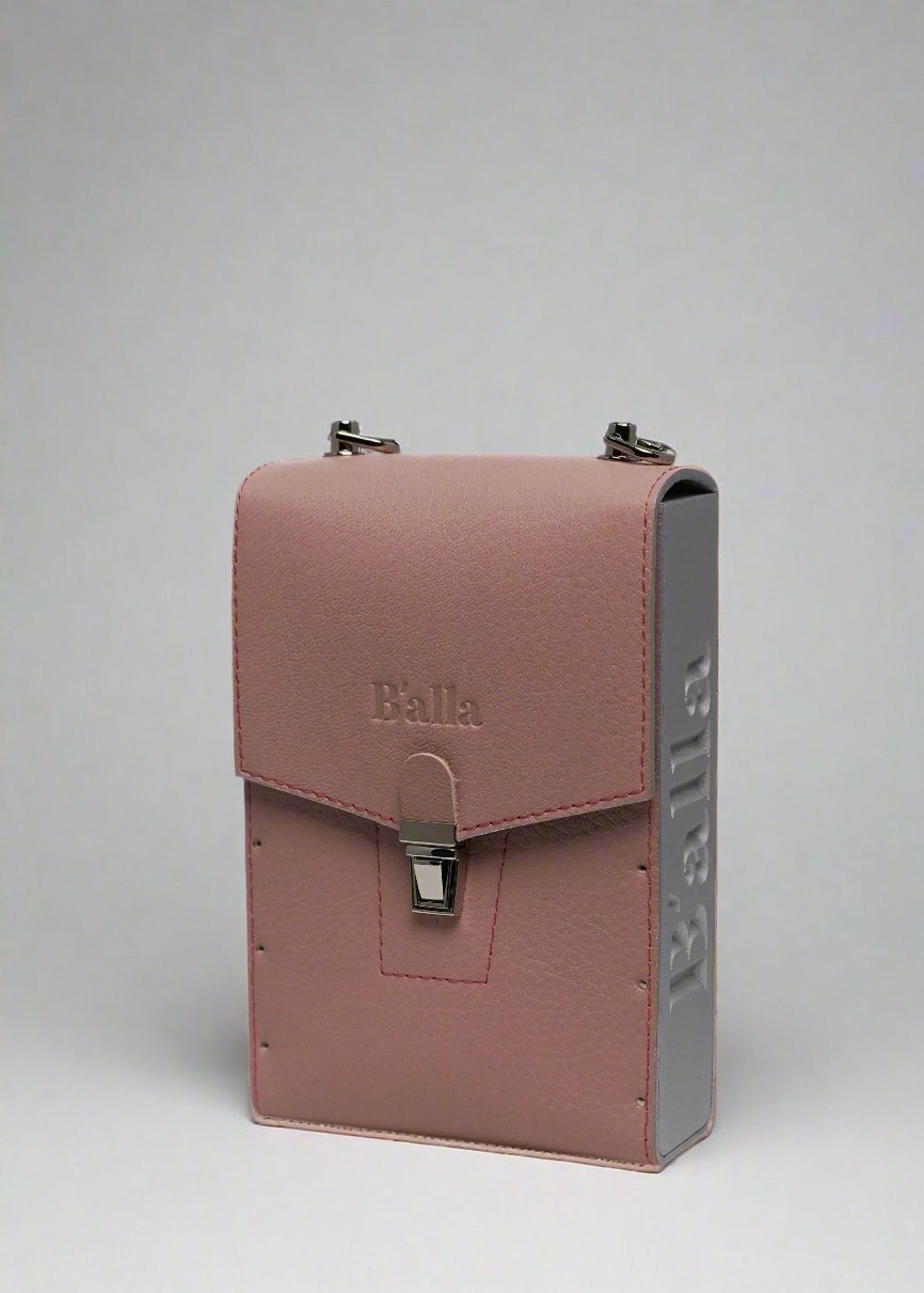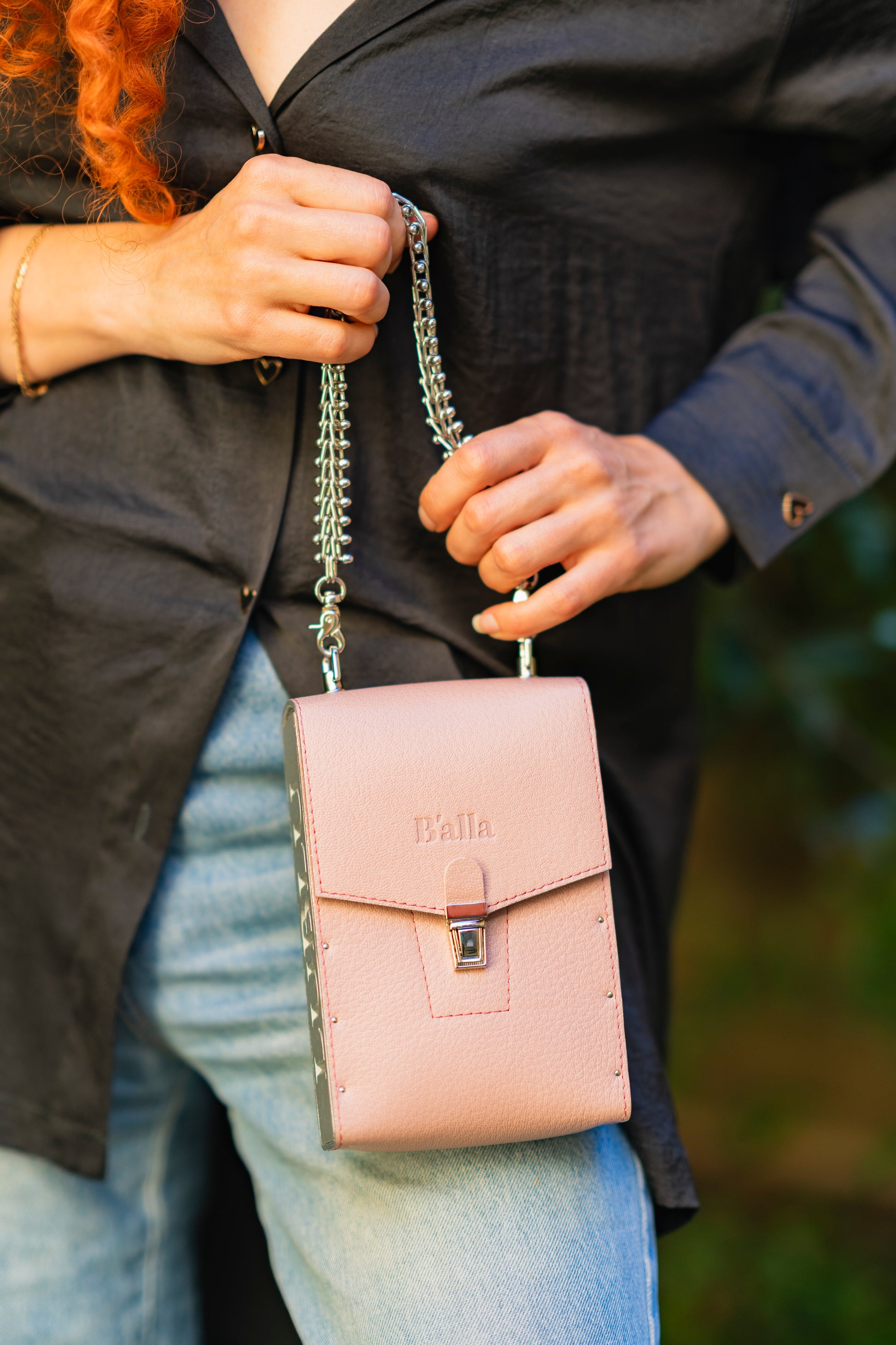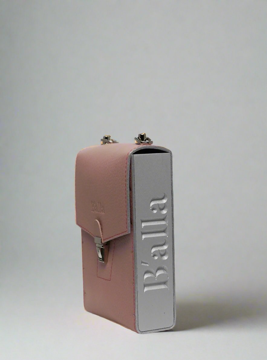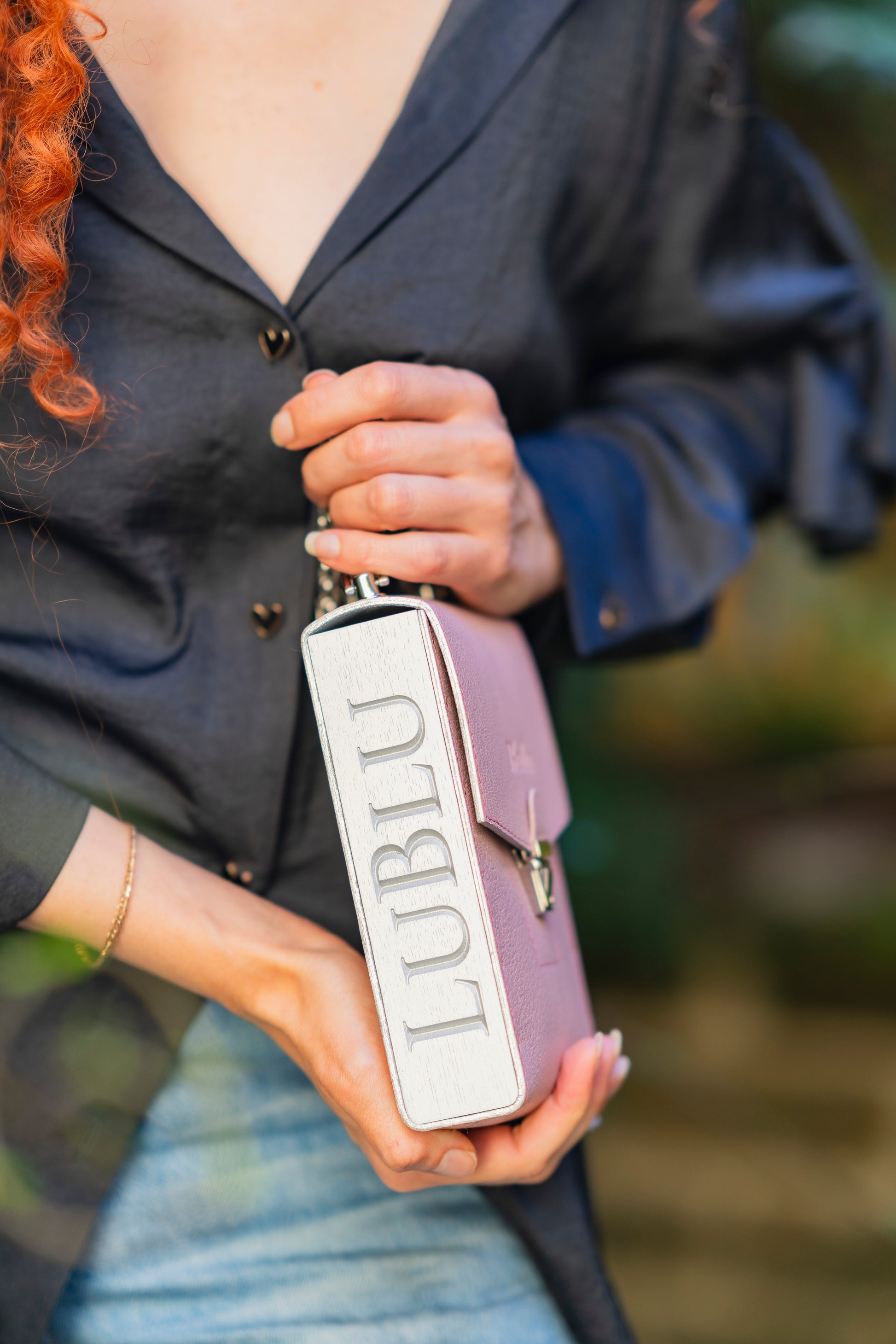 Upgrade your style with this elegant Pink Leather Crossbody Bag, crafted from smooth pink leather with a sleek and minimalistic design. This structured bag features a unique wooden side panel that adds a natural, earthy element to its modern look.