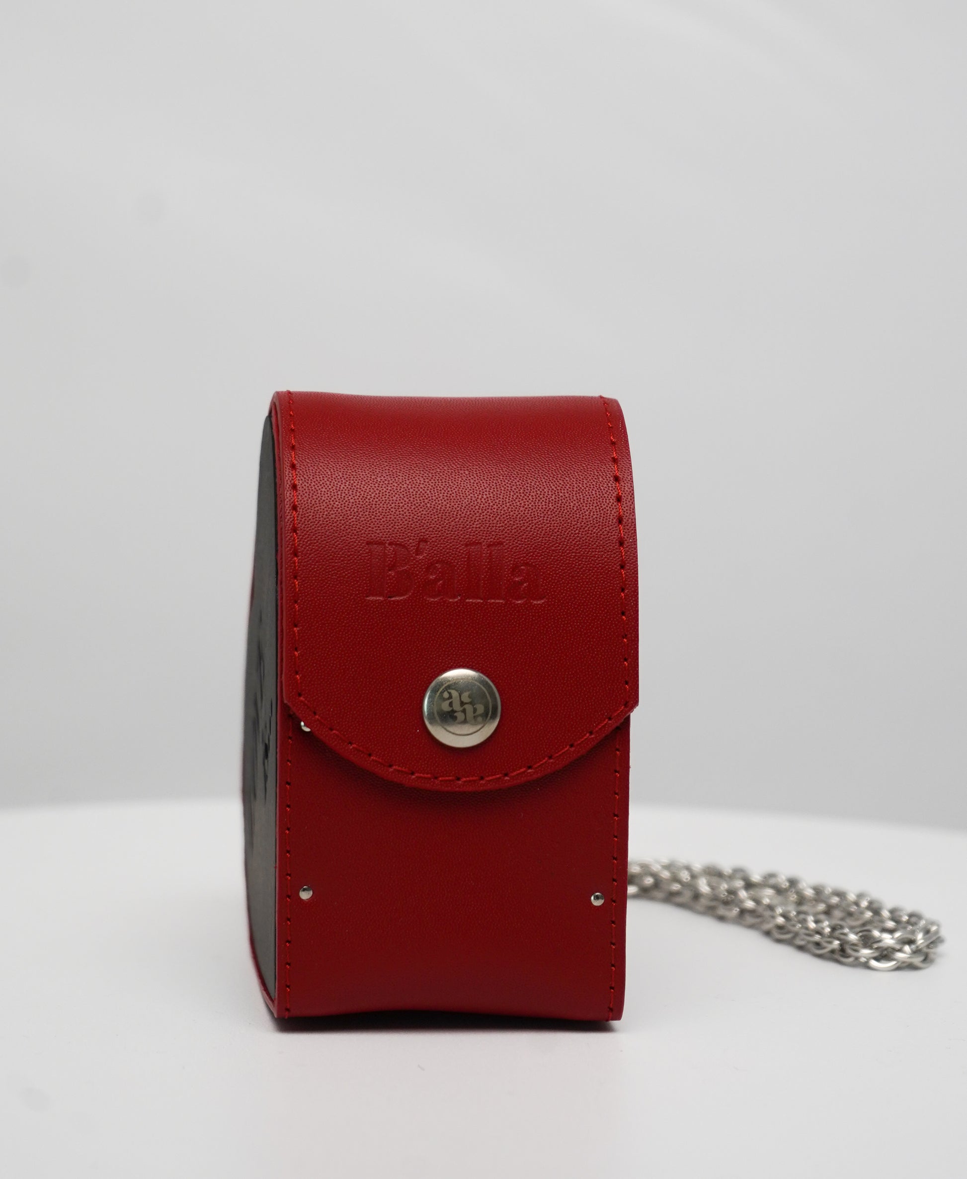 Add a playful twist to your outfit with this Red Leather Crossbody Bag, featuring a heart-shaped side panel filled with shimmering red glitter. Crafted from smooth red leather, this bag is designed to make a bold statement while staying compact and functional.