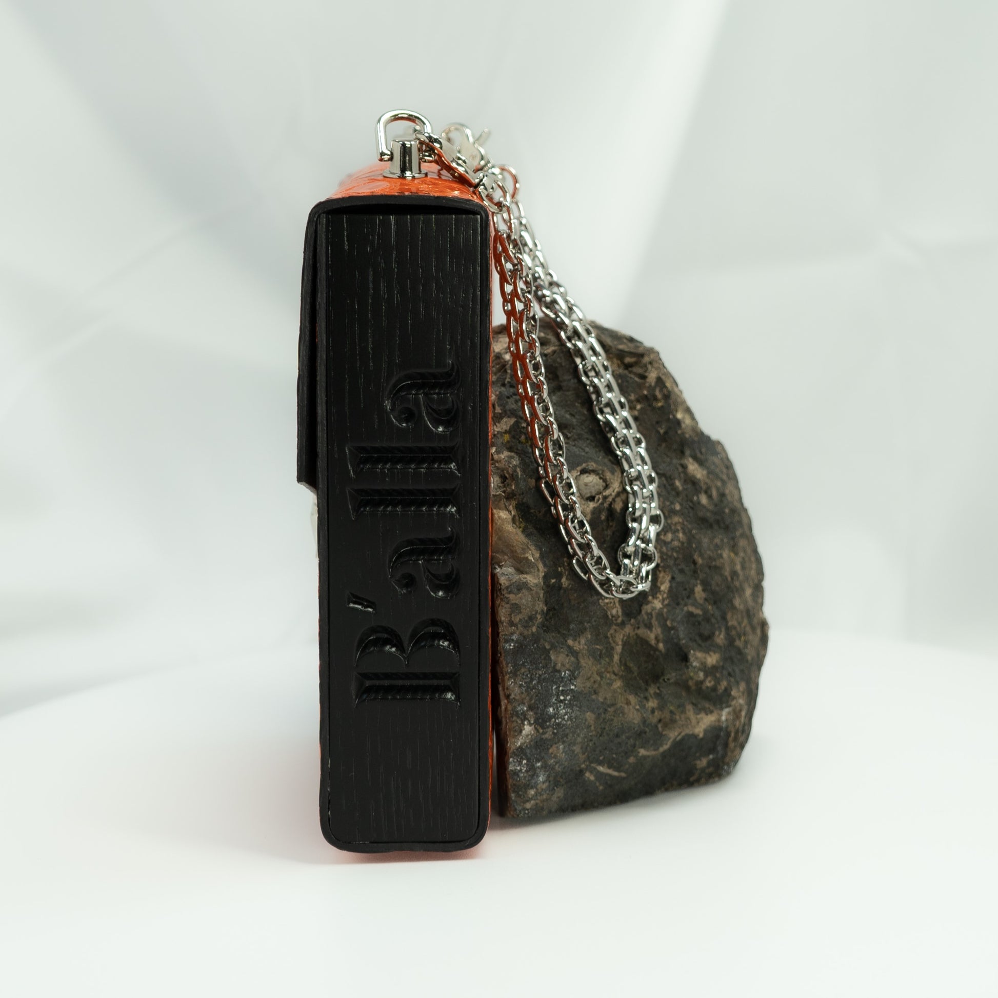 Crafted from Italian leather, lined with Alcantara inside, with American oak walls. Silver-toned hardware imported from Italy.
